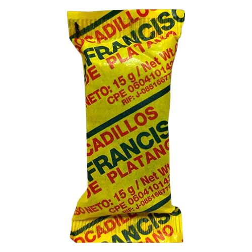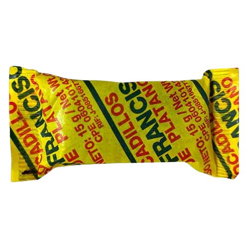 Bocadillos de Plátano en presentación por paquete de 15 unidades.