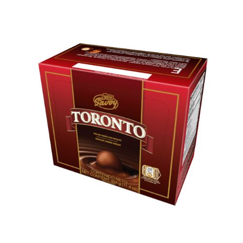 TORONTO, Avellana cubierta con chocolate, presentación en caja de 36 unidades.